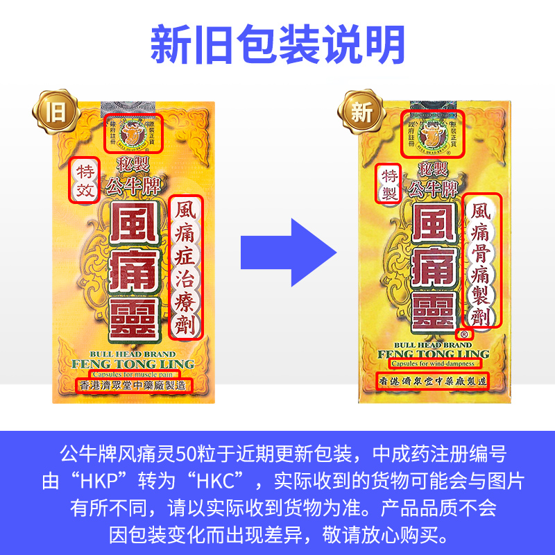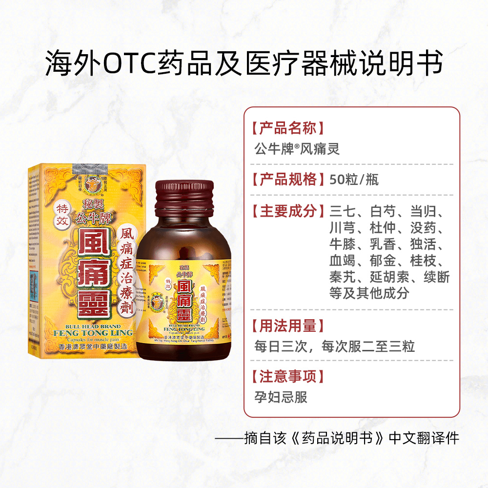 📚 中国香港原装 公牛牌风痛灵50粒/瓶腰酸背痛头痛止痛四肢麻木