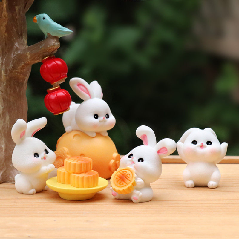 📚 中秋节卡通小兔子盲盒玩具萌兔月饼模型树脂配件创意微景观小摆件