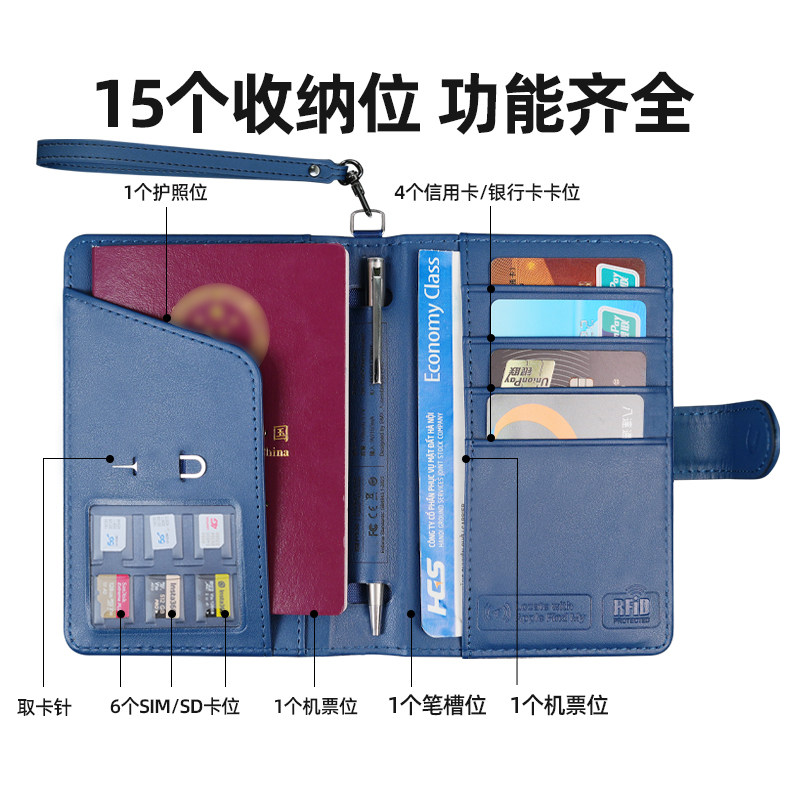 📚 护照夹防丢防盗刷全球定位多功能收纳钱包旅行证件卡包保护套随身