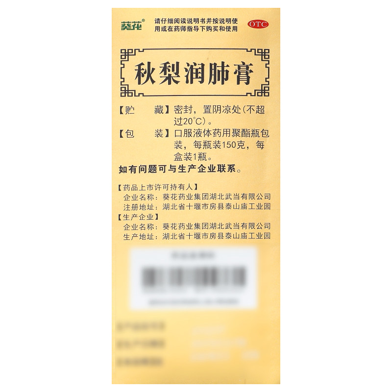 📚 国营连锁】葵花牌 秋梨润肺膏150g 润肺止咳生津久咳咳嗽润肺膏zy