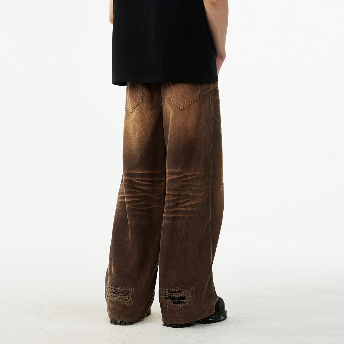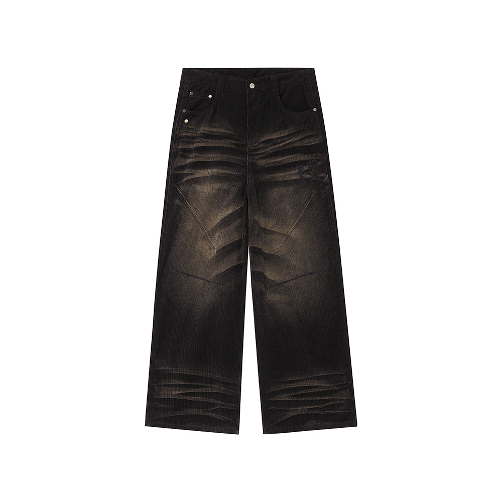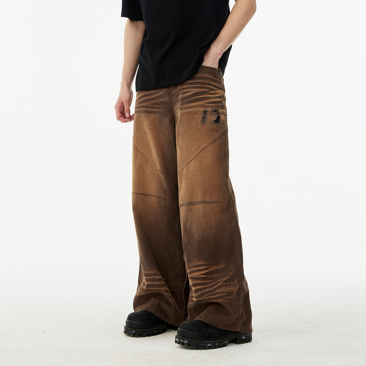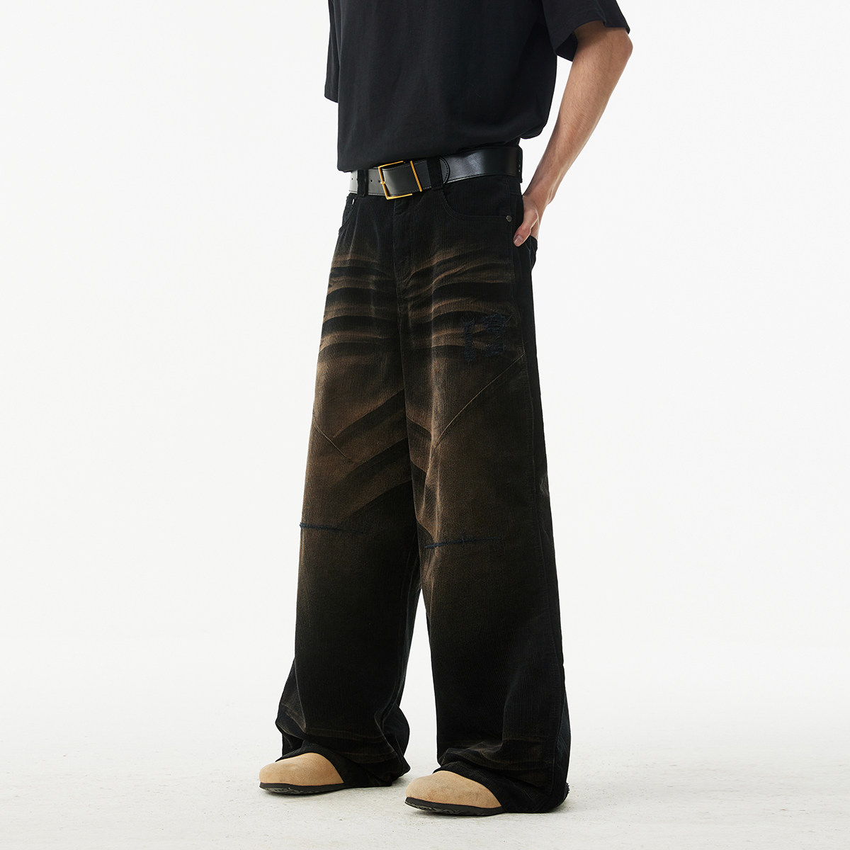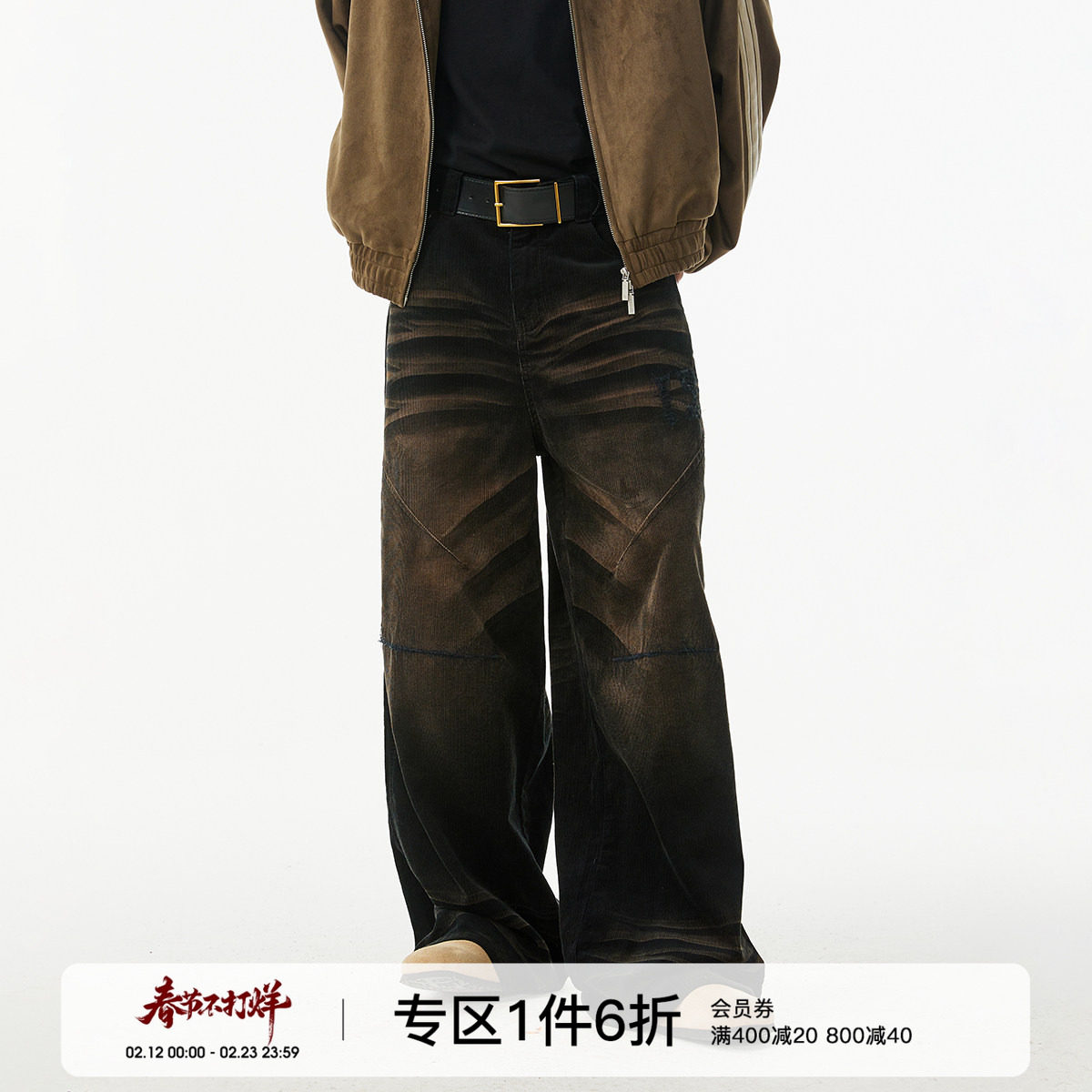 📚 FORNINES灯芯绒洗水做旧直筒休闲裤子男潮牌春秋美式复古阔腿长裤