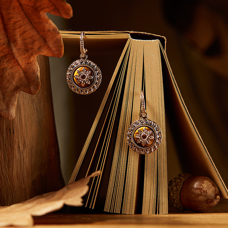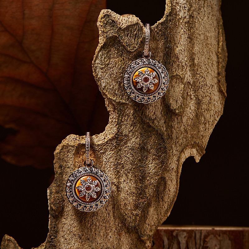 📚 【董璇同款】Riotlily艾特里里北欧循迹耳环虎眼石优雅太阳纹锆石