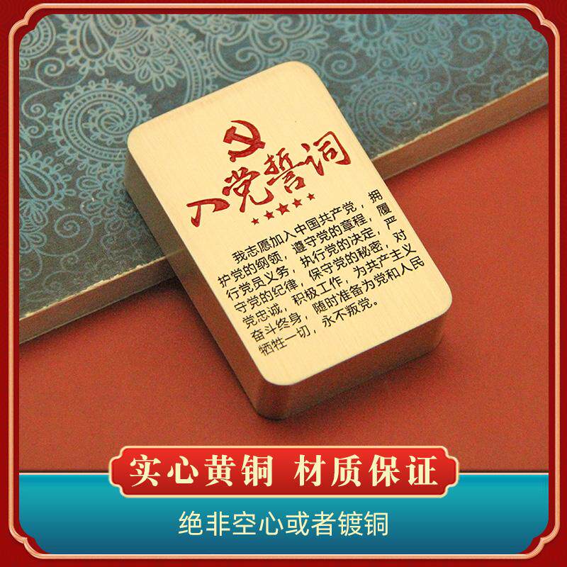 📚 书边 入党誓词长方形黄铜镇纸文房四宝文创礼品书法字画压纸镇尺
