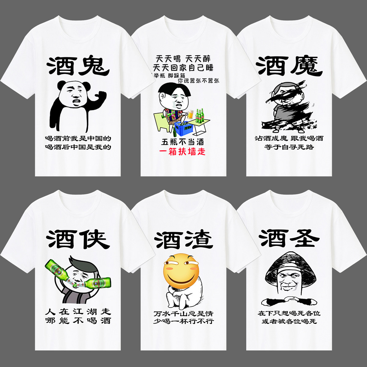 📚 抖音同款喝酒衣服搞笑T恤男女酒吧KTV蹦迪短袖酒神称号定制半袖夏