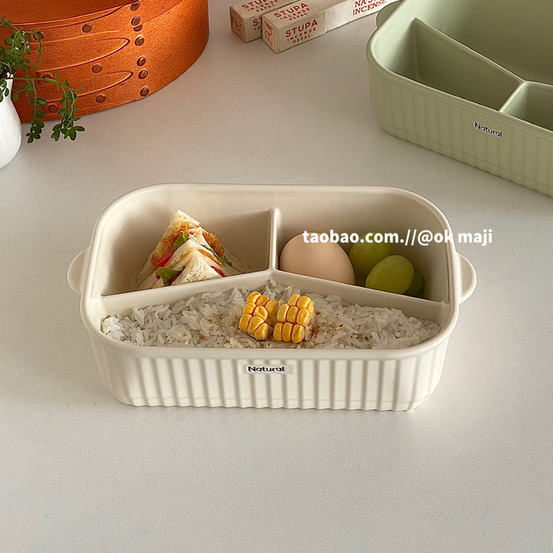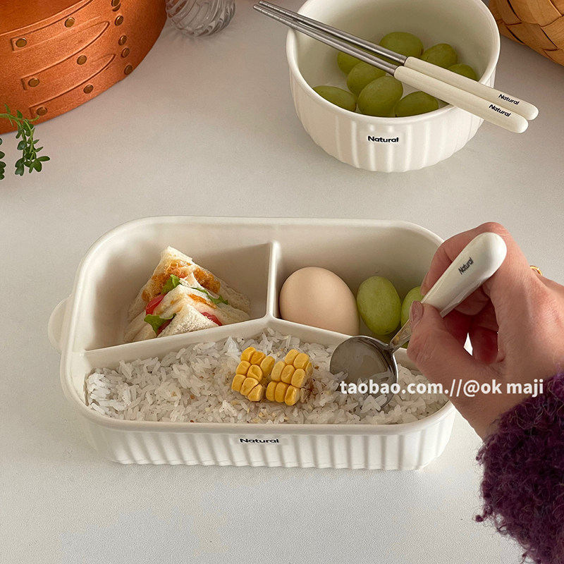 📚 陶瓷分格饭盒微波炉加热专用三格餐盒带盖上班族带饭分隔便当盒