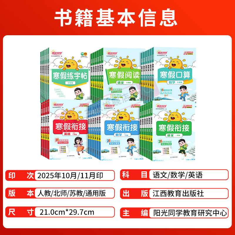 📚 2026阳光同学寒假衔接作业一 二年级三四五六年级上下册语文数学英语人教北师苏教版寒假预复习寒假阅读口算寒假学习计划表