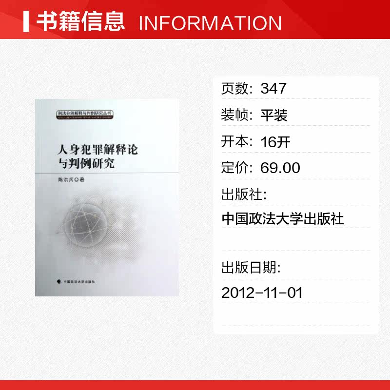 📚 人身犯罪解释论与判例研究 陈洪兵 著作 著 法学理论社科 新华书店正版图书籍 中国政法大学出版社