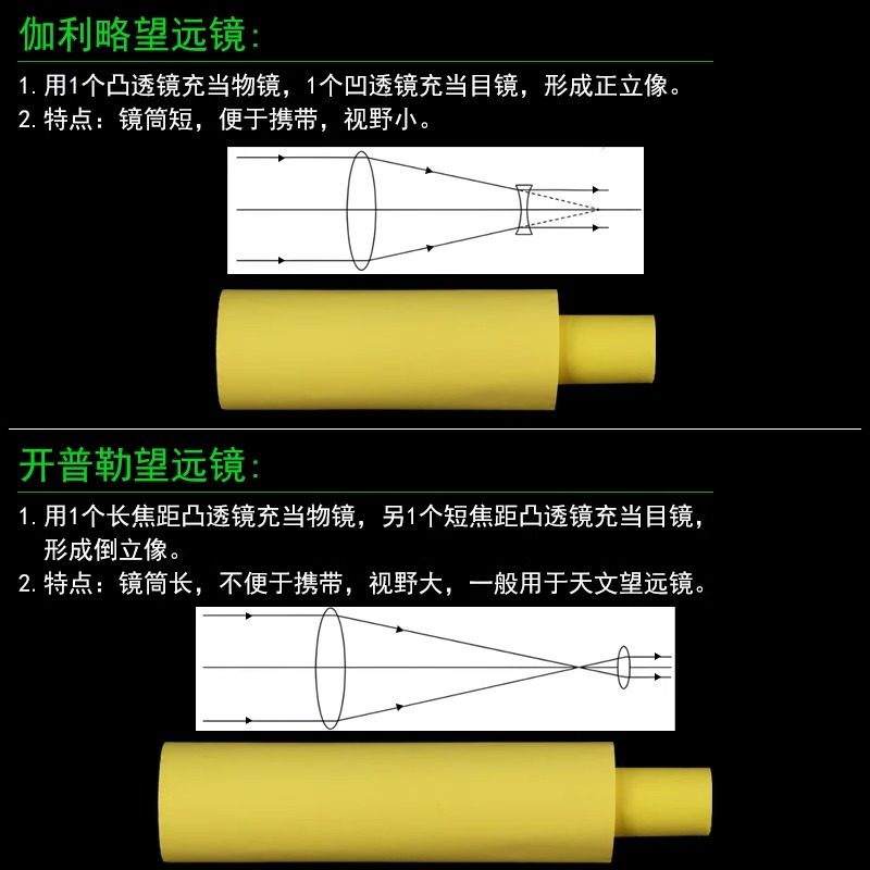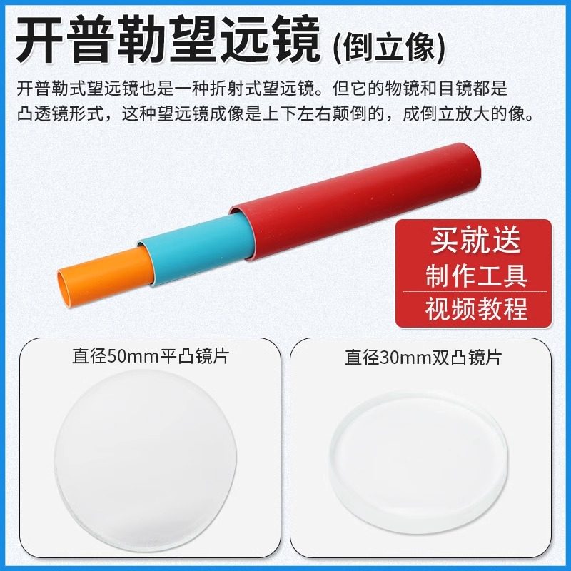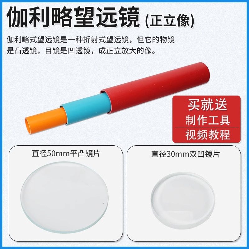 📚 望远镜制作材料学生手工自制开普勒望远镜凹凸透镜片伽利略凹透镜初中物理光学实验器材教具人教版小科学DIY