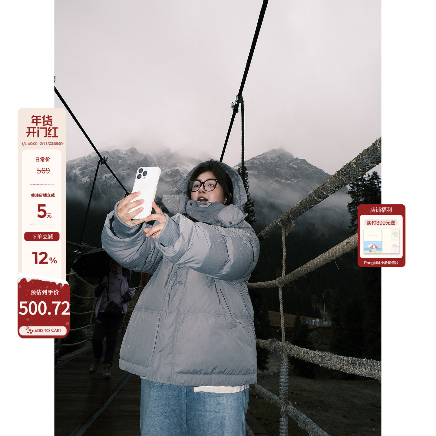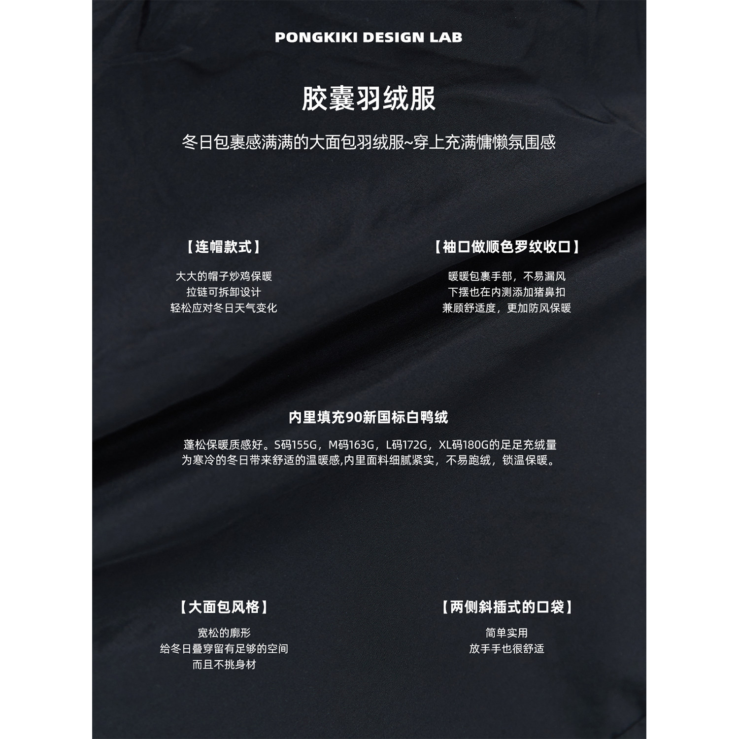 📚 老章和小胖PONGKIKI胶囊羽绒服90绒女大码胖mm可拆卸连帽羽绒衣冬