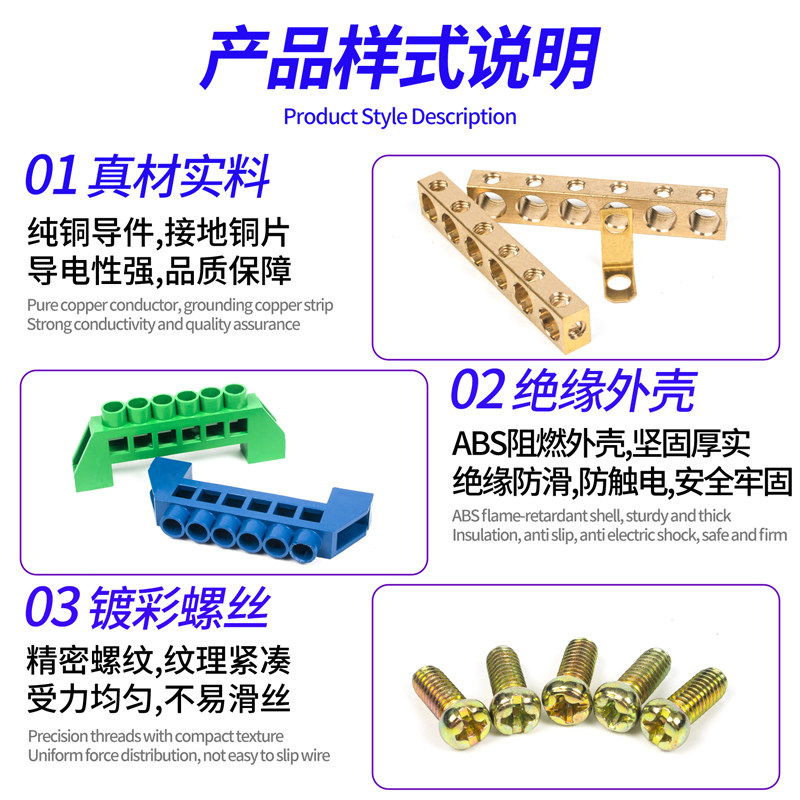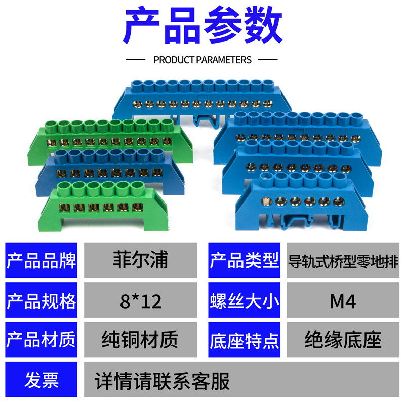 📚 蓝绿色桥型零地排导轨式6*9接线端子排配电箱地线排4/6/8/10/12孔