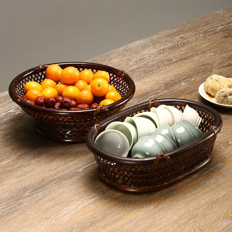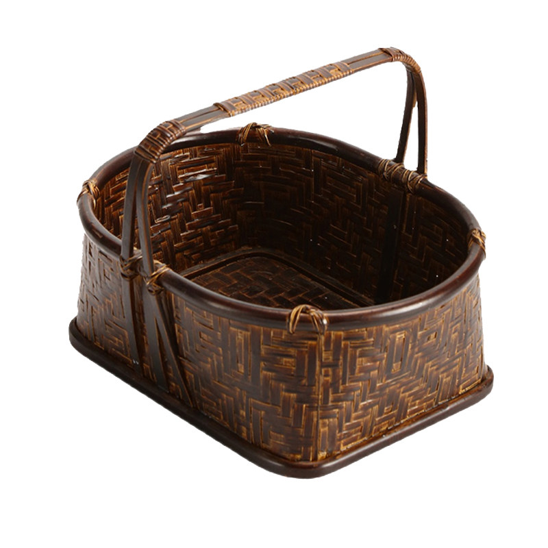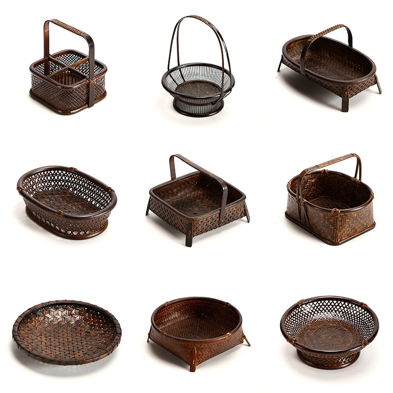 📚 竹编复古提篮收纳果盘篮子手提家用大漆食盒送餐盒茶道具收纳筐