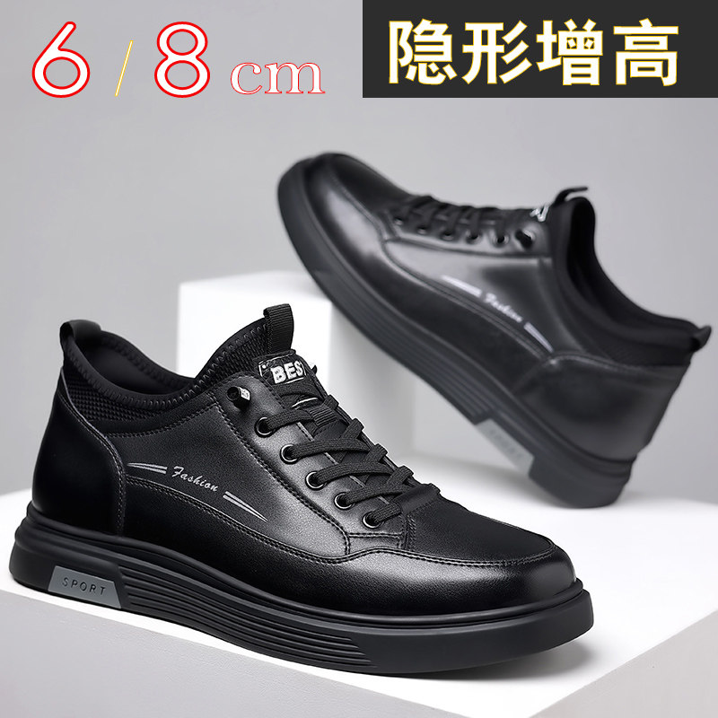 📚 增高鞋男鞋士休闲鞋真皮潮流韩版男运动休闲皮鞋内增高8cm百搭6cm