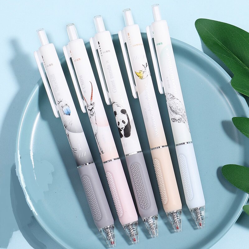 📚 晨光濒危动物中性笔笔学生用0.5子弹头按动式可换黑色替芯水笔小清新按压式ins高颜值签字笔J3416创意文具