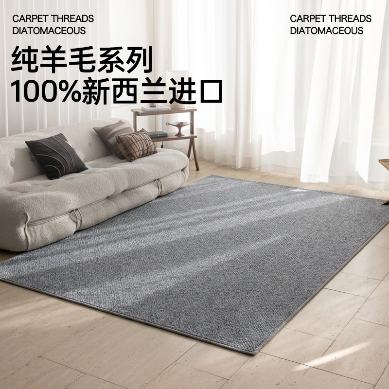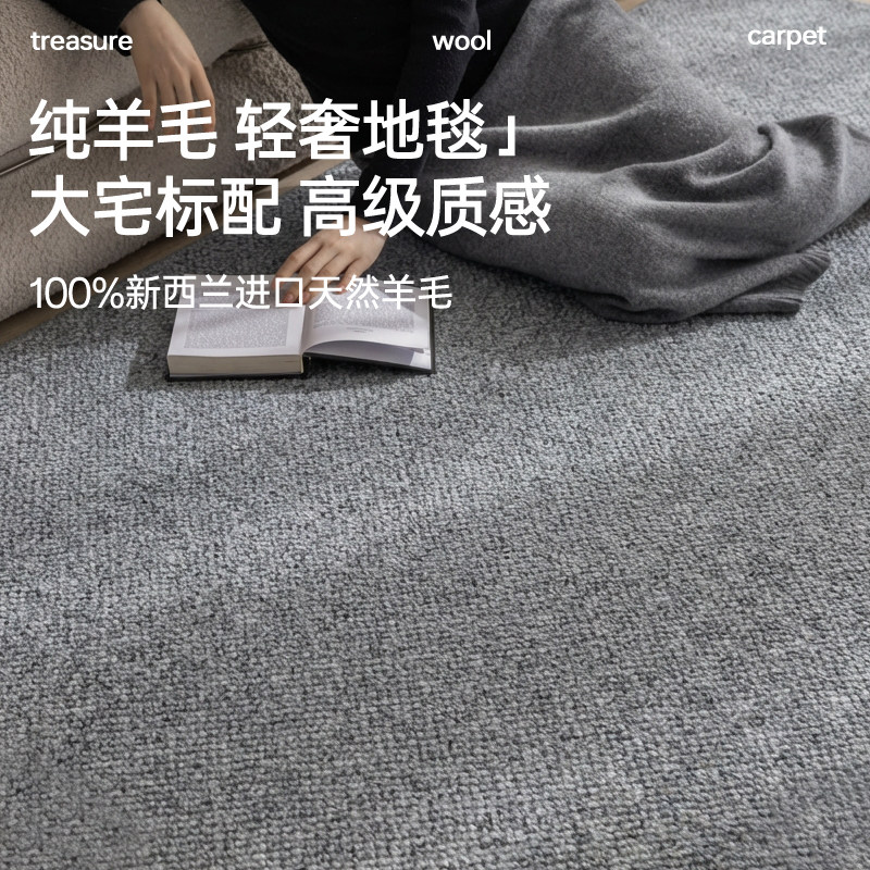 📚 进口纯羊毛地毯客厅茶几卧室沙发床边家用房间轻奢高级感纯色定制