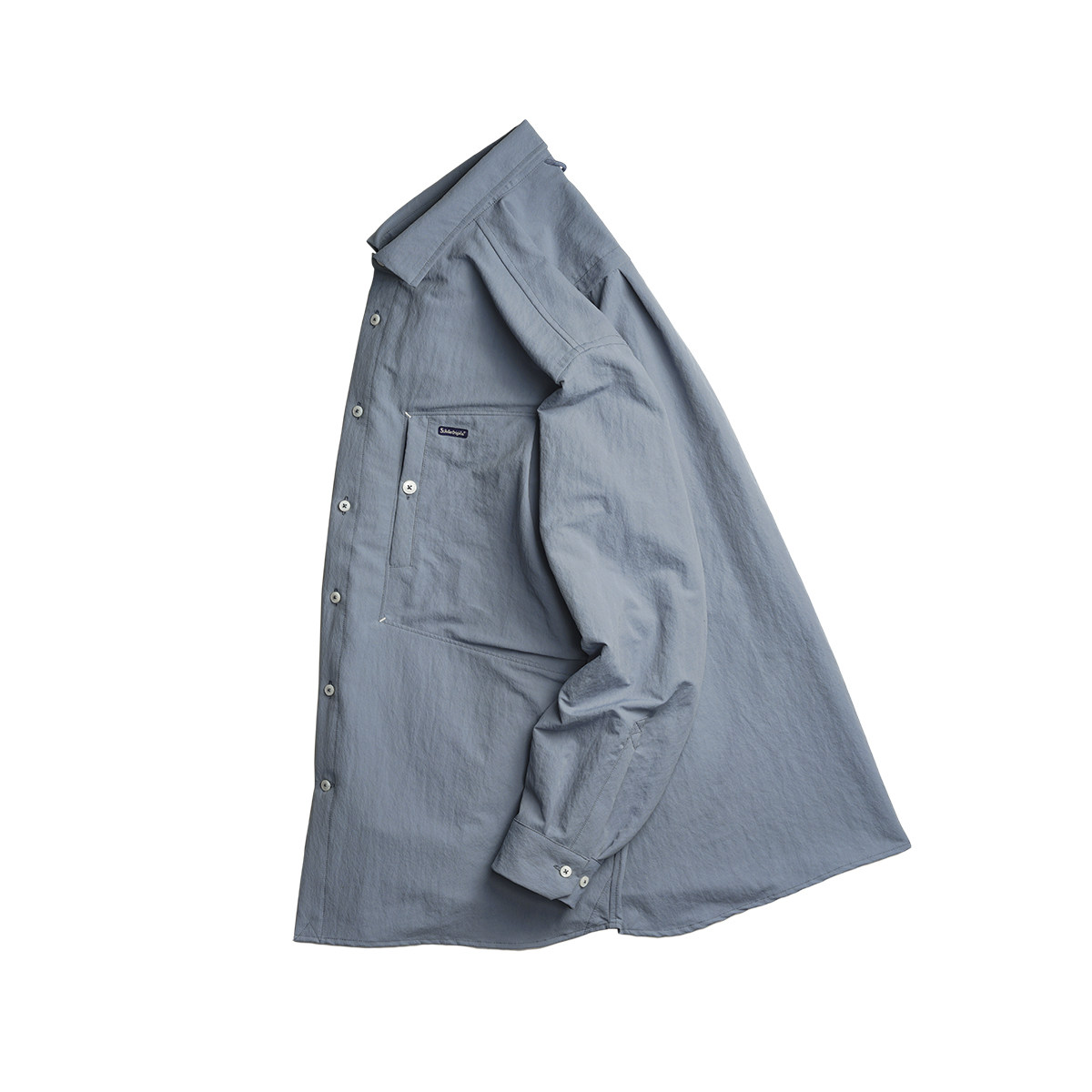 📚 STRL 防水快干翻领皱感立体口袋贝壳纽扣宽松长袖衬衫