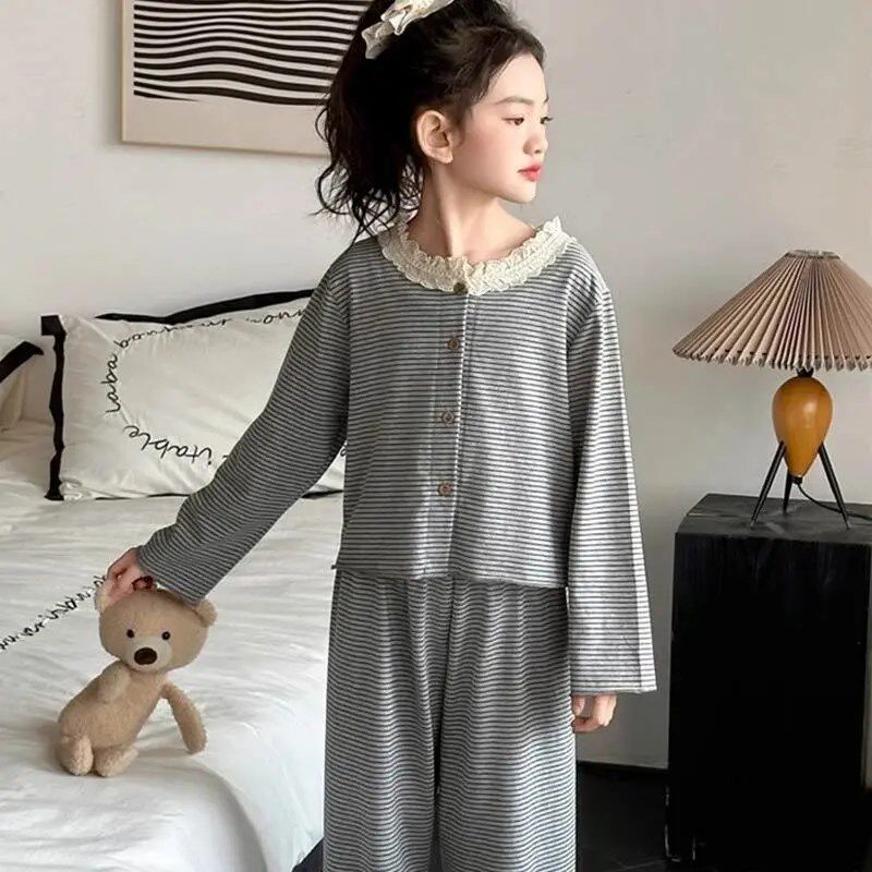 📚 儿童睡衣套装春秋款新款开衫女孩家居服套装宽松外穿中大童空调服
