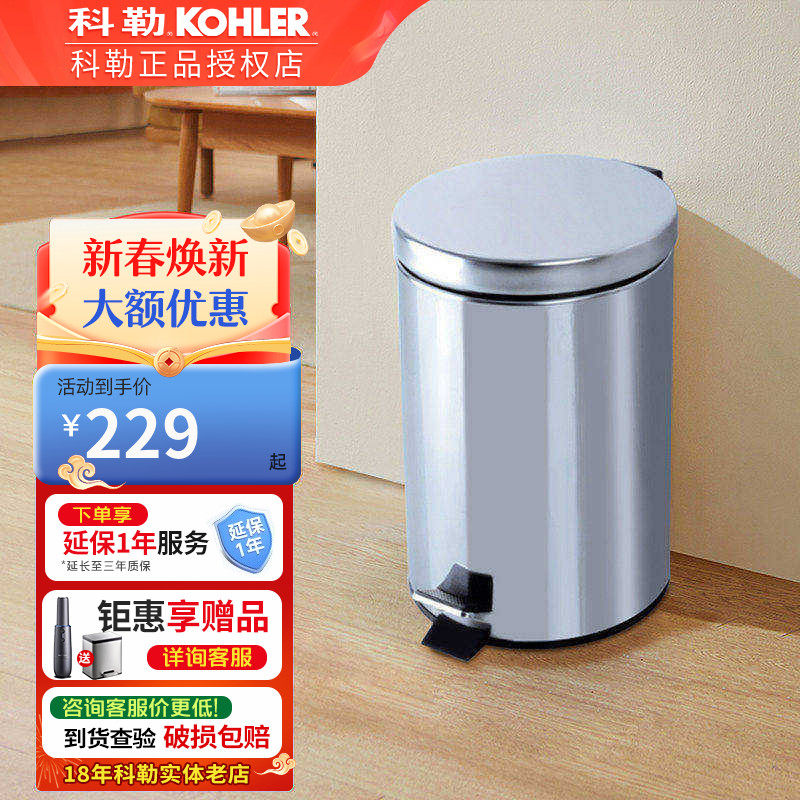 📚 科勒踏板垃圾桶依欧亚齐悦踏板式卫生间厨房不锈钢防臭桶72902T