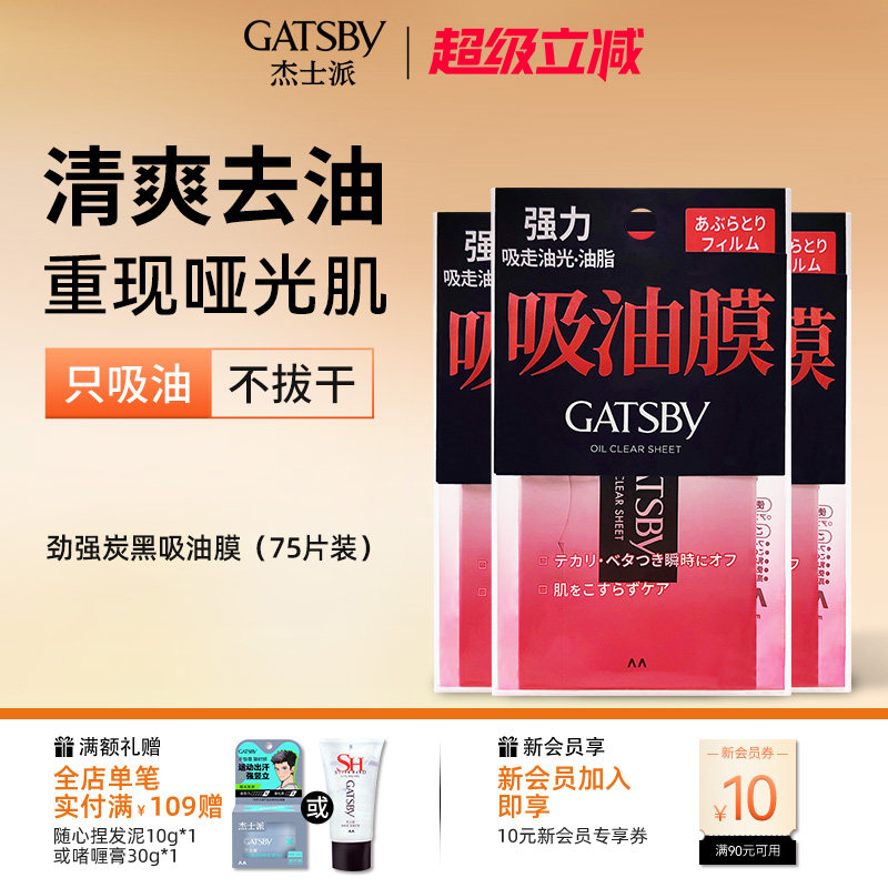 📚 Gatsby杰士派劲强炭黑吸油膜75片清爽去油不拔干面部鼻子去油男女