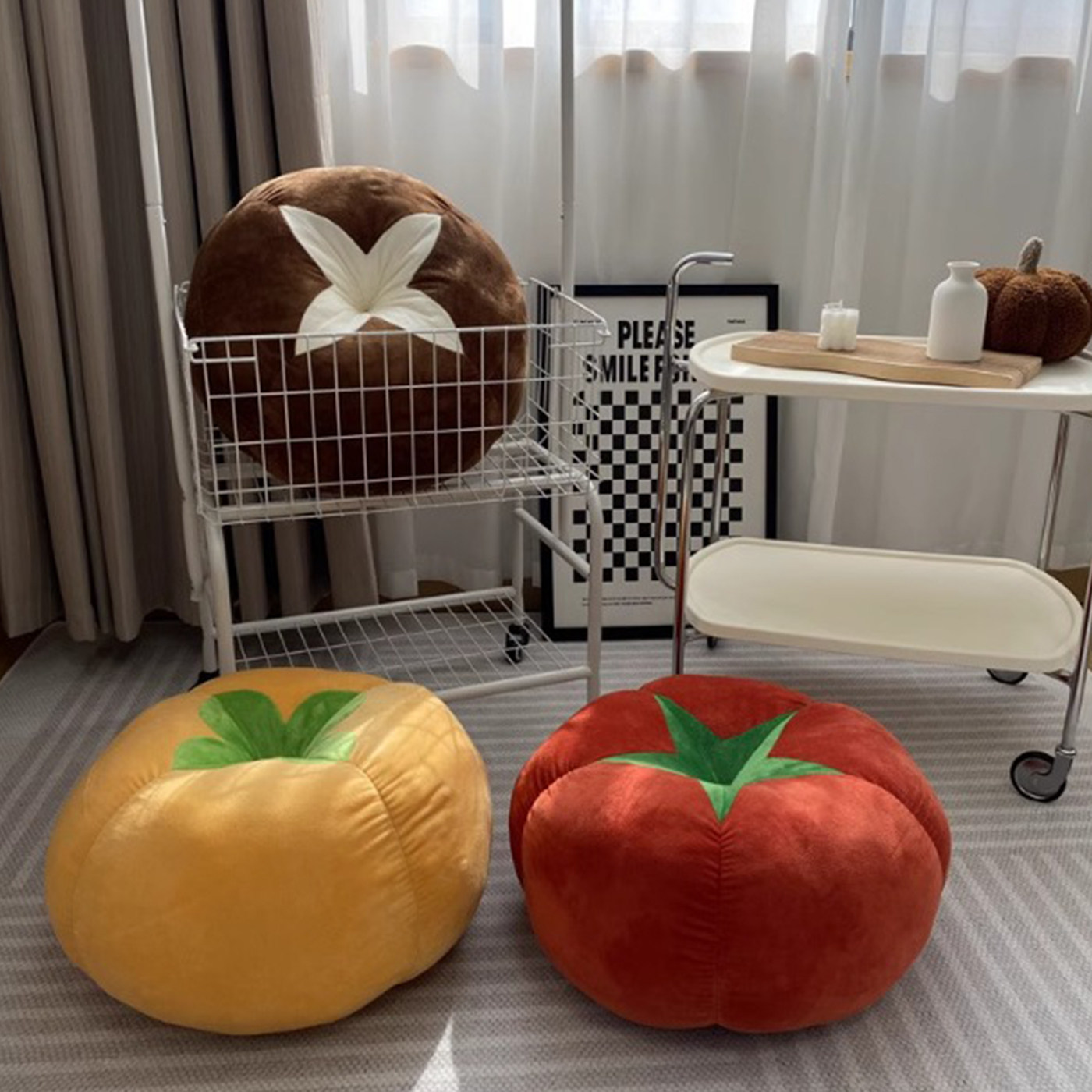 📚 西红柿抱枕香菇小番茄毛绒公仔玩具坐垫沙发靠枕飘窗玩偶床上摆件