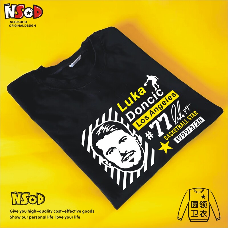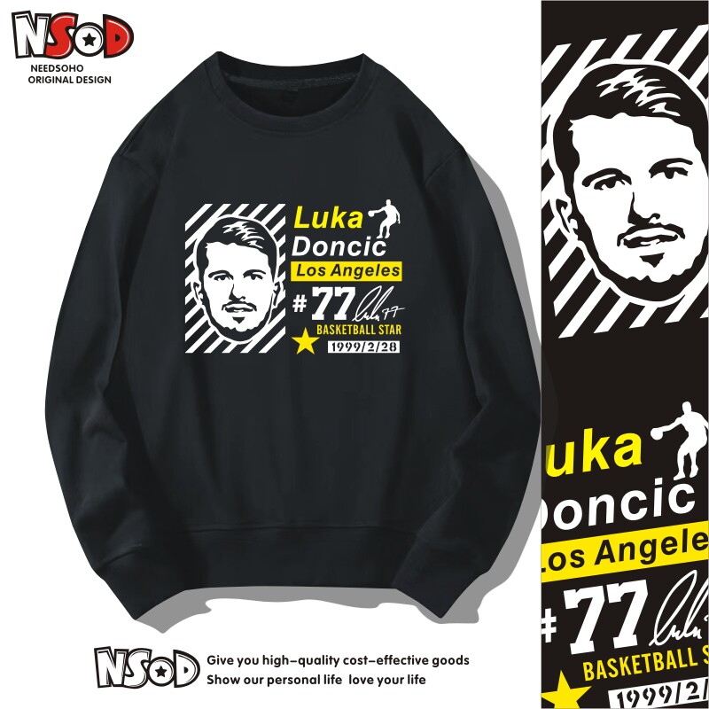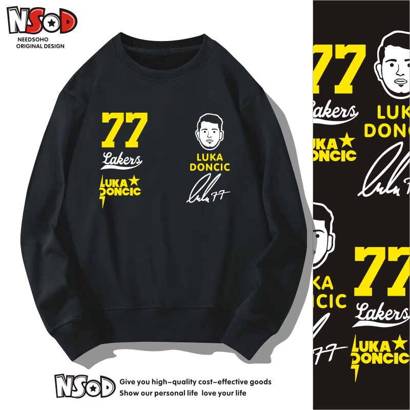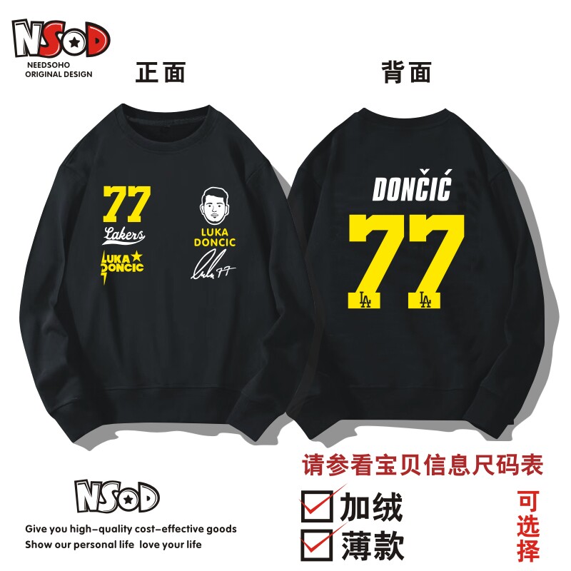 📚 洛杉矶湖人东契奇篮球衣服长袖卫衣套头圆领77号加绒薄款秋冬男