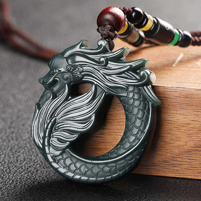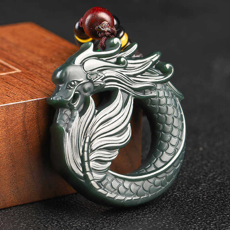 📚 新疆和田玉塔青一细龙挂件龙行天下青玉吊坠男女款生肖龙玉佩玉器