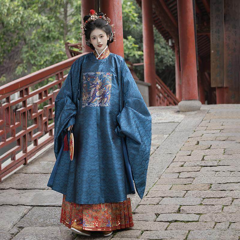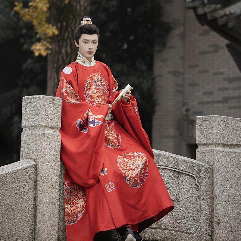 📚 卿如故汉服明制婚服圆领袍十二章长拖尾大衫麒麟补服重工定染红色