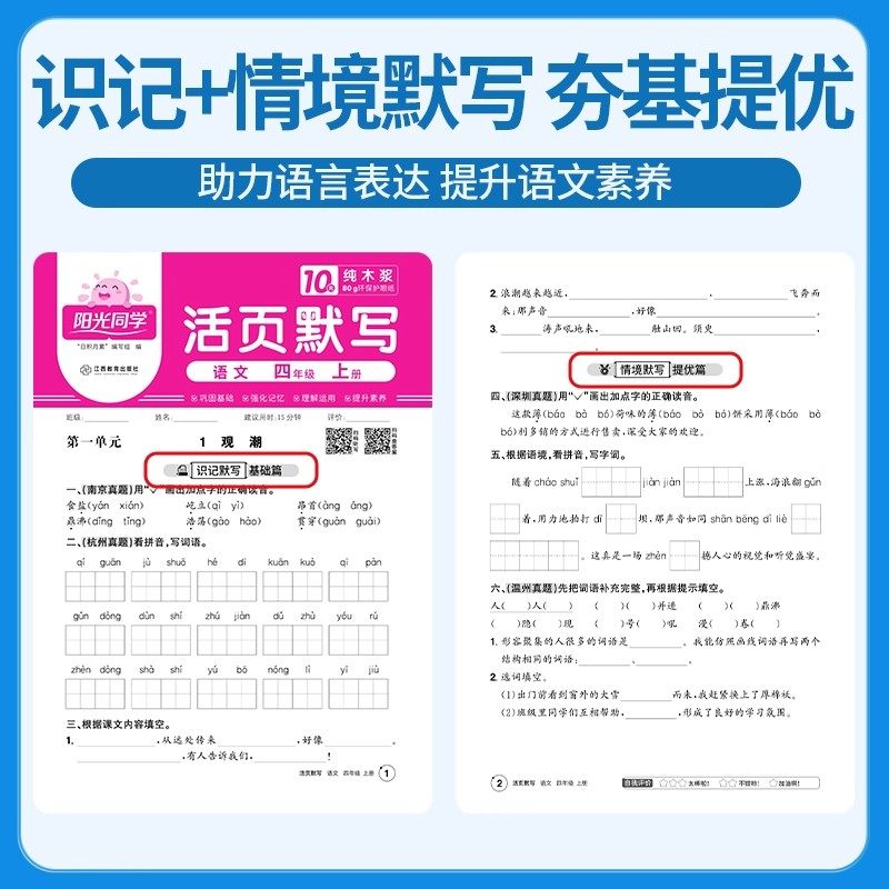 📚 适用于2026春教材阳光同学活页默写计算练字帖提优试卷一二三四五六年级下册语文数学能手同步练习口算题天天练人教版官方旗舰店