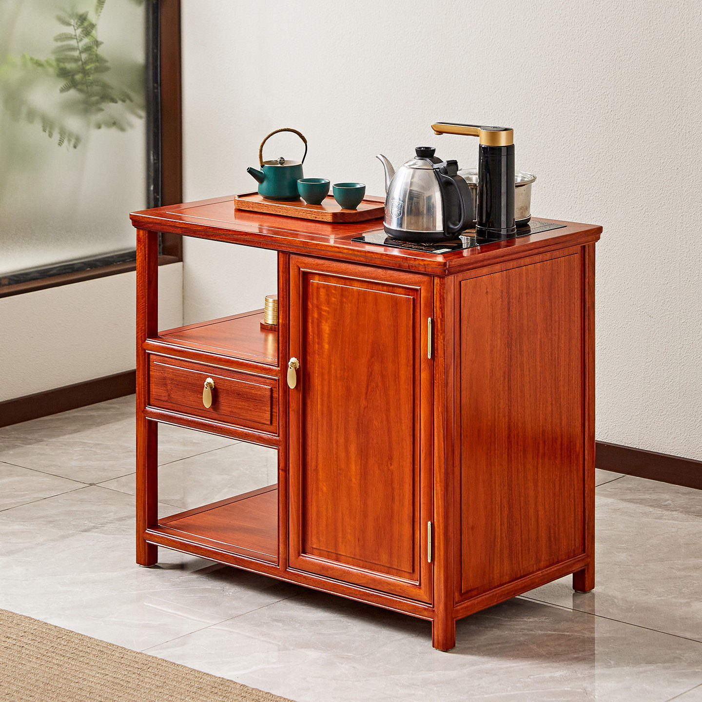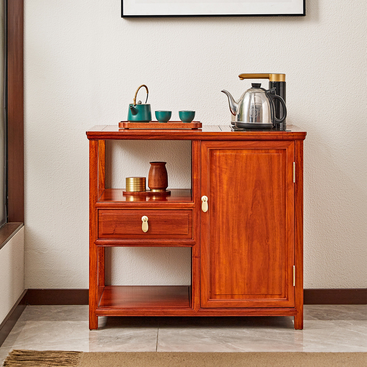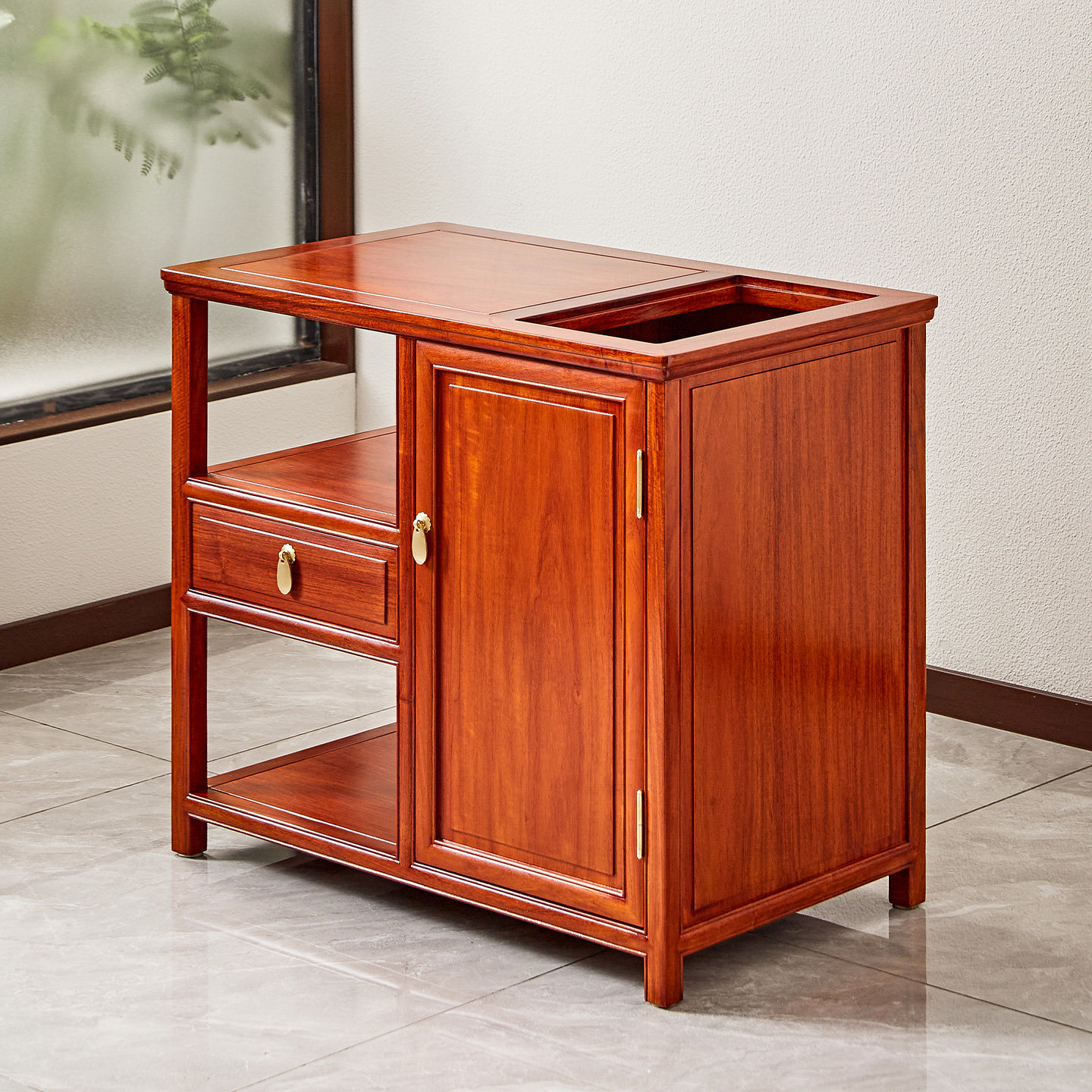 📚 红木家具缅甸花梨木茶水柜实木茶边柜中式大果紫檀茶水台阳台茶几