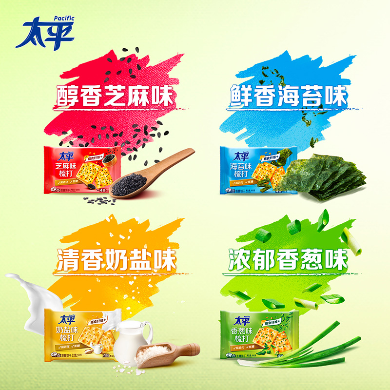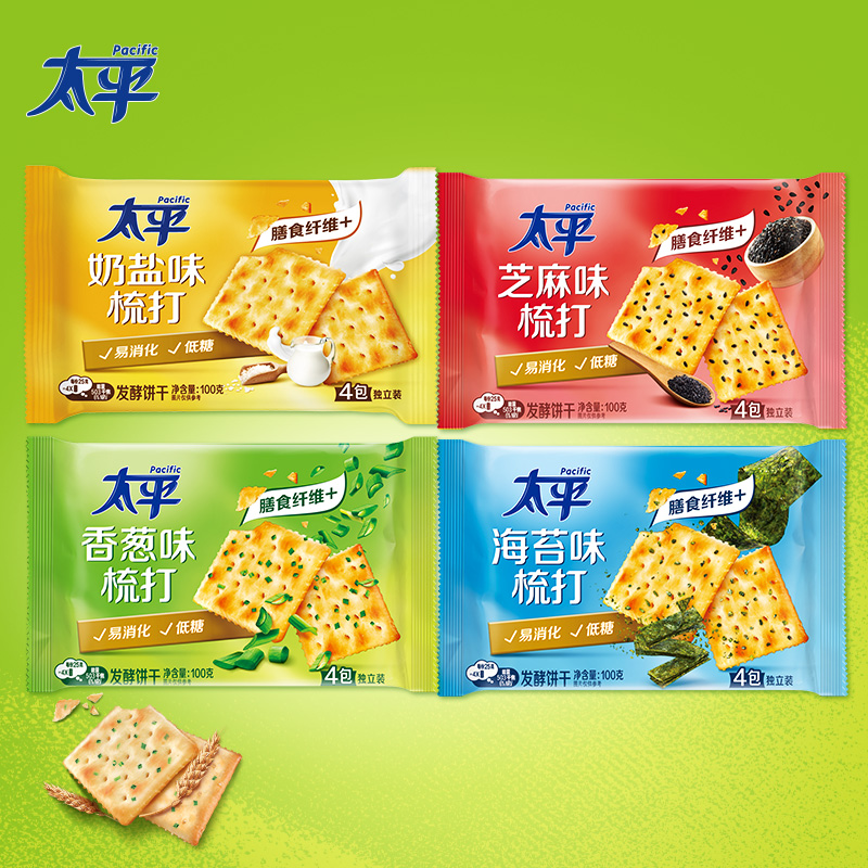 📚 太平苏打饼干100g*24袋箱装咸味奶盐香葱味梳打饼干礼盒装早餐