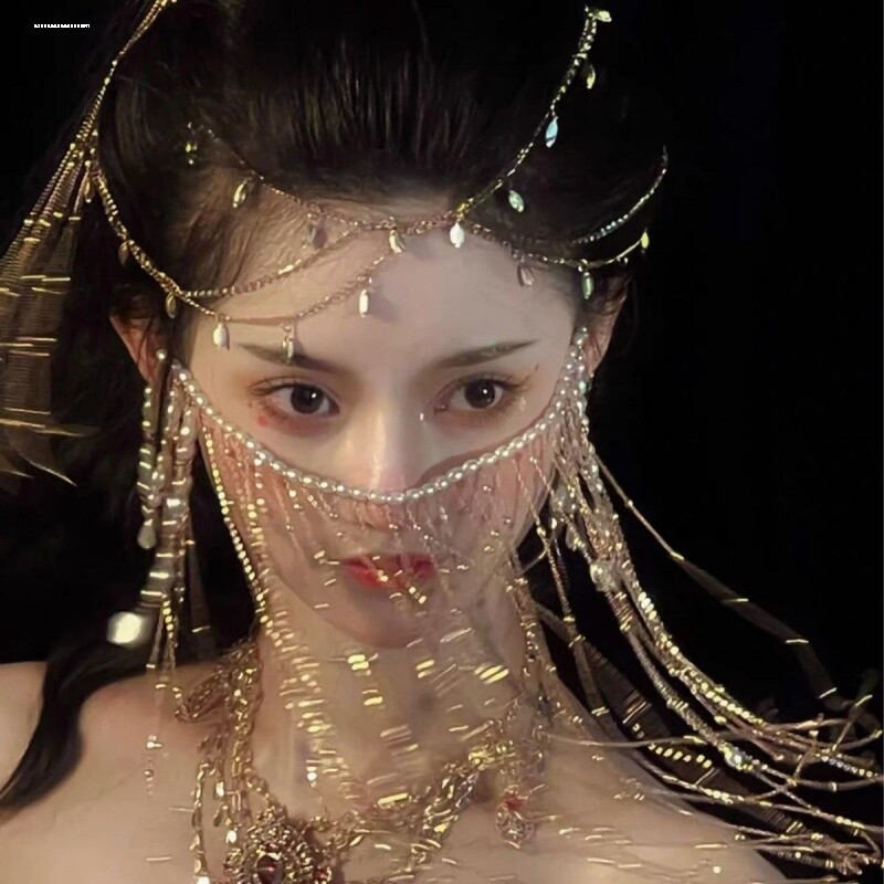 📚 面帘古风遮脸面纱流苏汉服古装头饰遮面饰品超仙气配饰西域舞姬