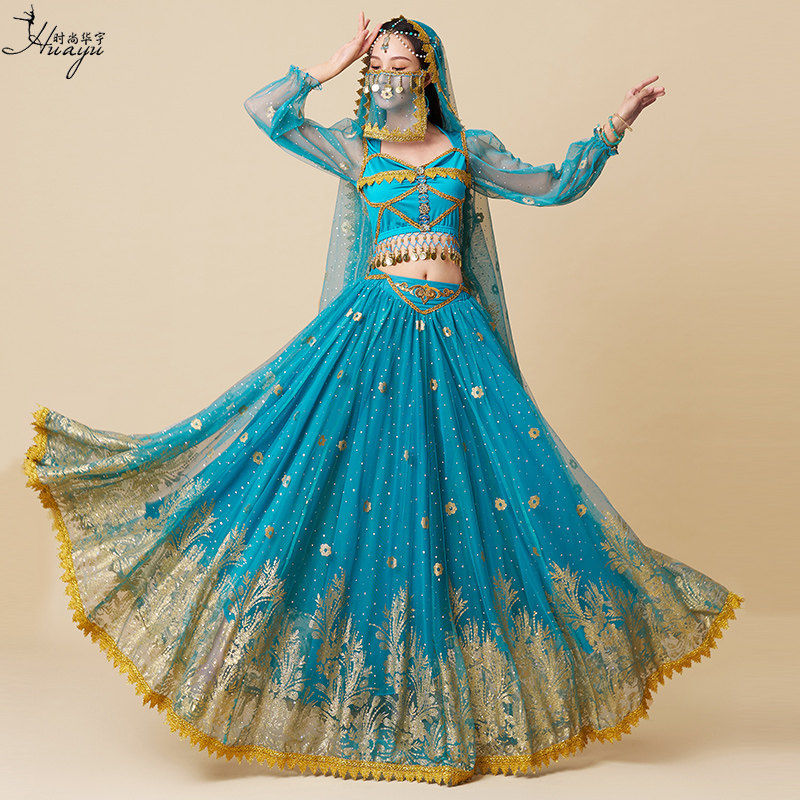 📚 异域风情茉莉公主cos服装西域舞姬印度舞肚皮舞720度大摆裙演出服