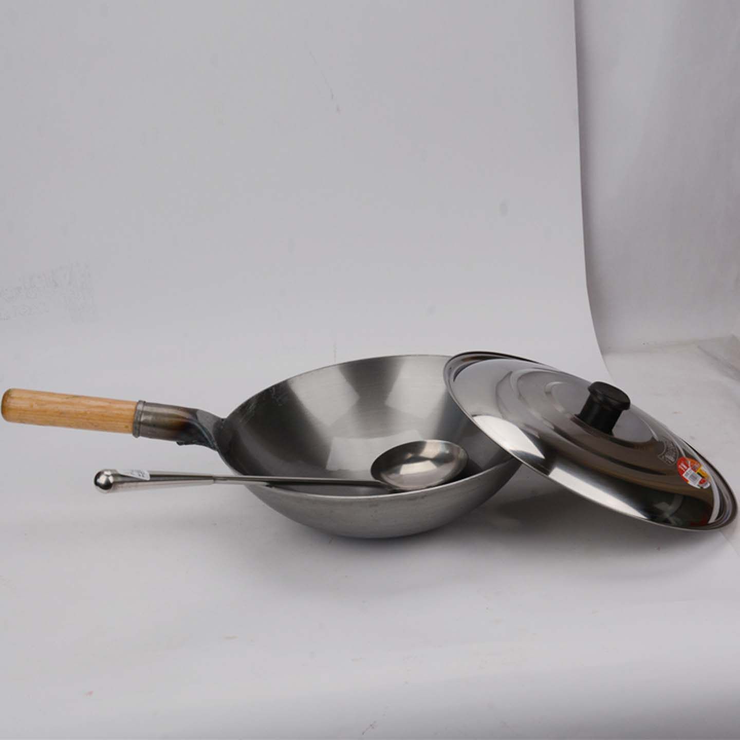 📚 温州瑞安星级钢印铁锅老式传统大铁锅家用无涂层不粘锅圆底炒a45