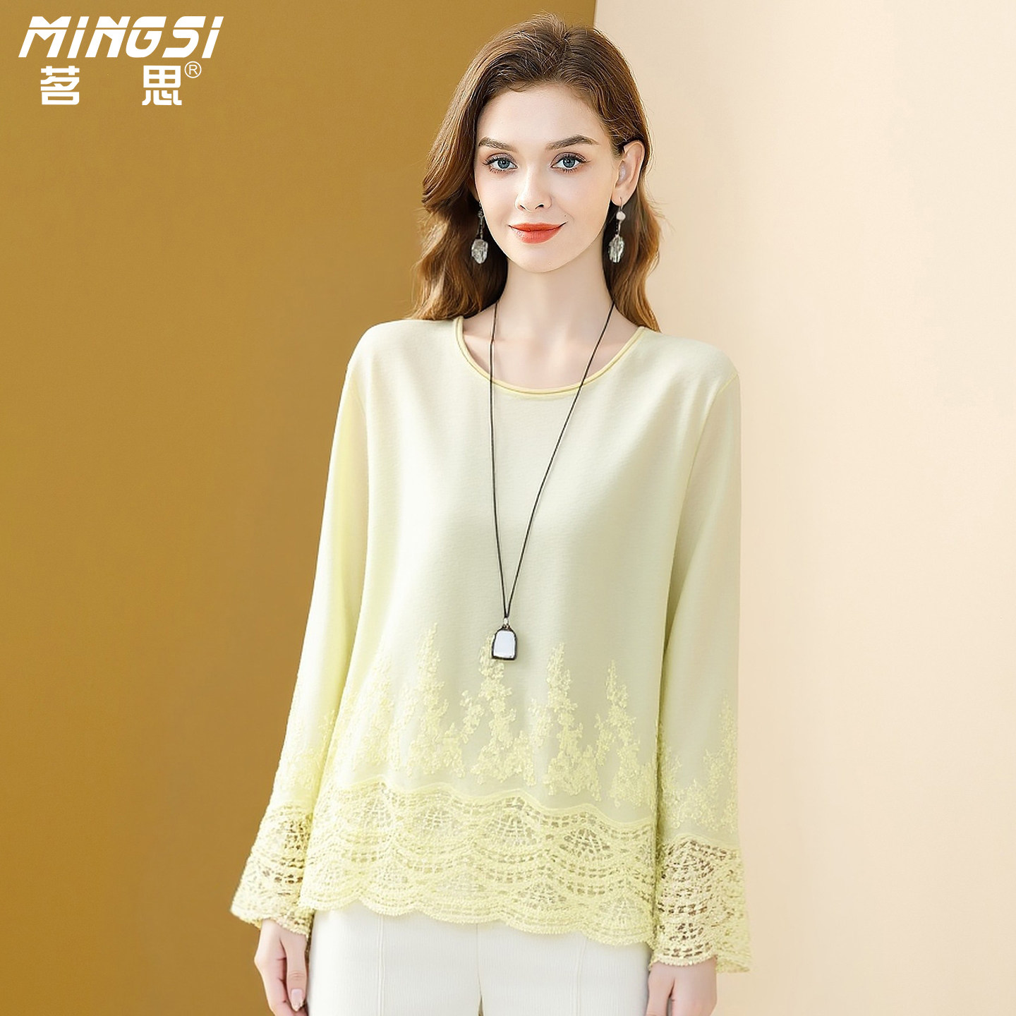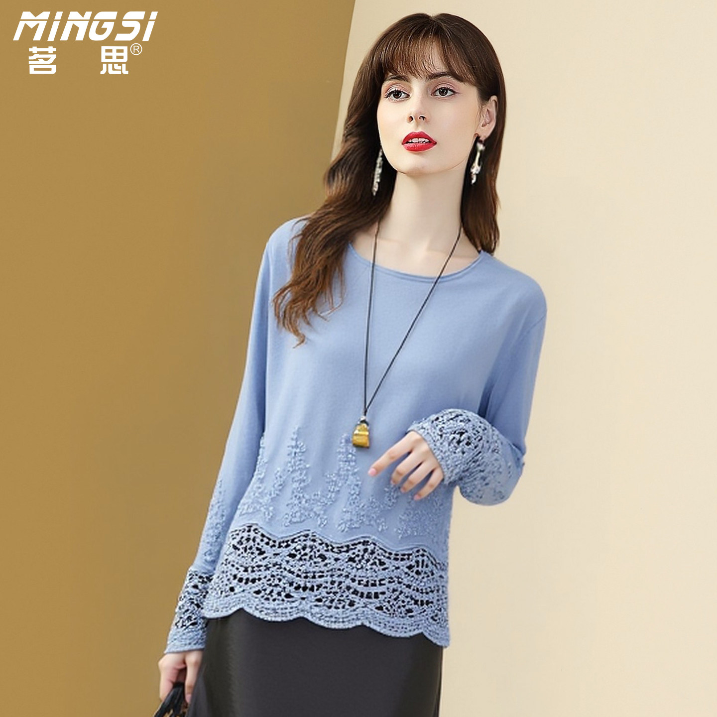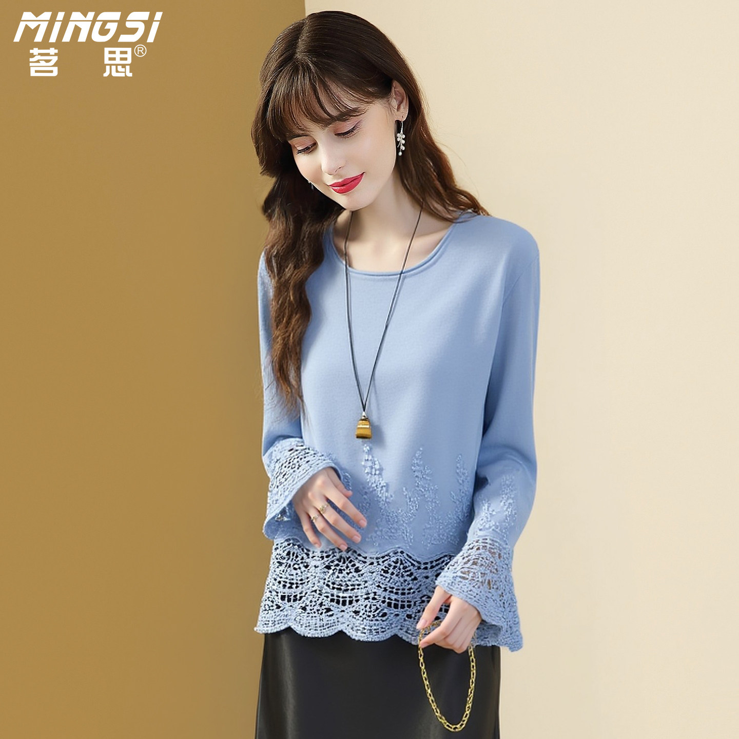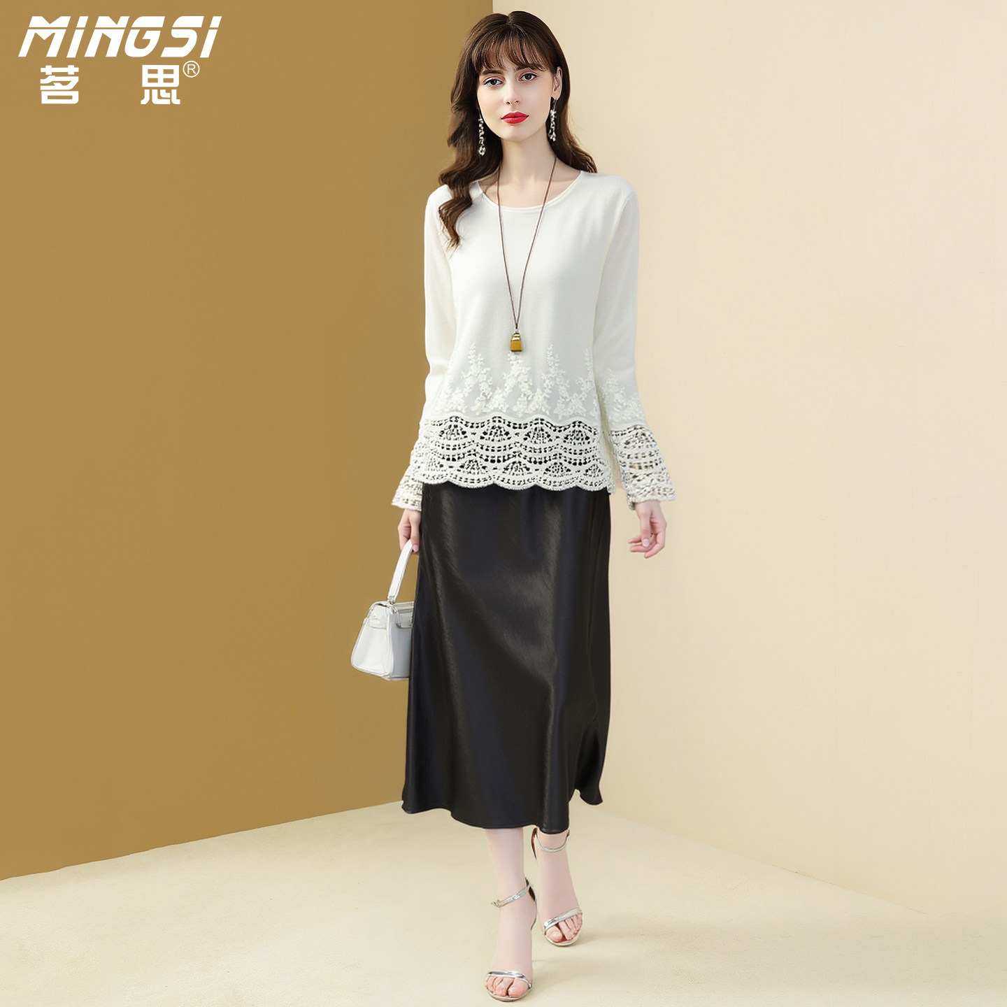 📚 茗思白色圆领镂空提花针织衫女2026春季新款时尚百搭显瘦长袖上衣