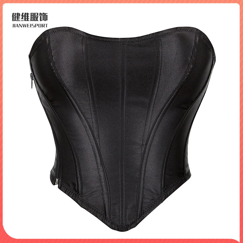 📚 辣妹上衣无袖小背心鱼骨支撑下围延长拉链缎面露肩美背裹胸骨衣女
