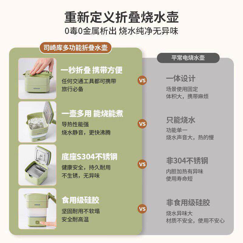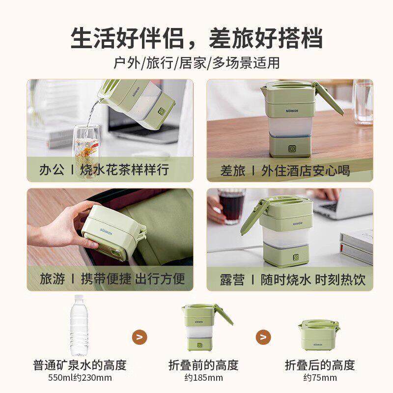 📚 SOIKOI司崎库折叠电热水壶可携式烧水壶家用旅行出差小型不锈钢壶
