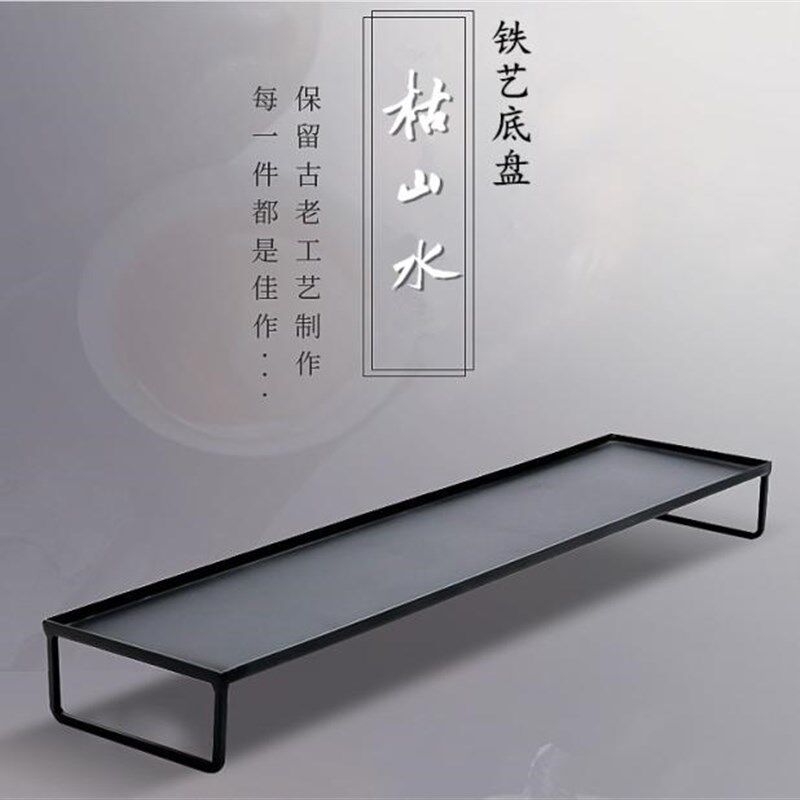 📚 枯山水实木铁艺沙盘 微景观底座盘 山石枯木摆件底座 茶具底盘