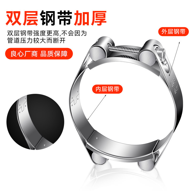 📚 304不锈钢双头双层强力喉箍卡箍高压加厚欧式抱箍管夹重型箍管卡
