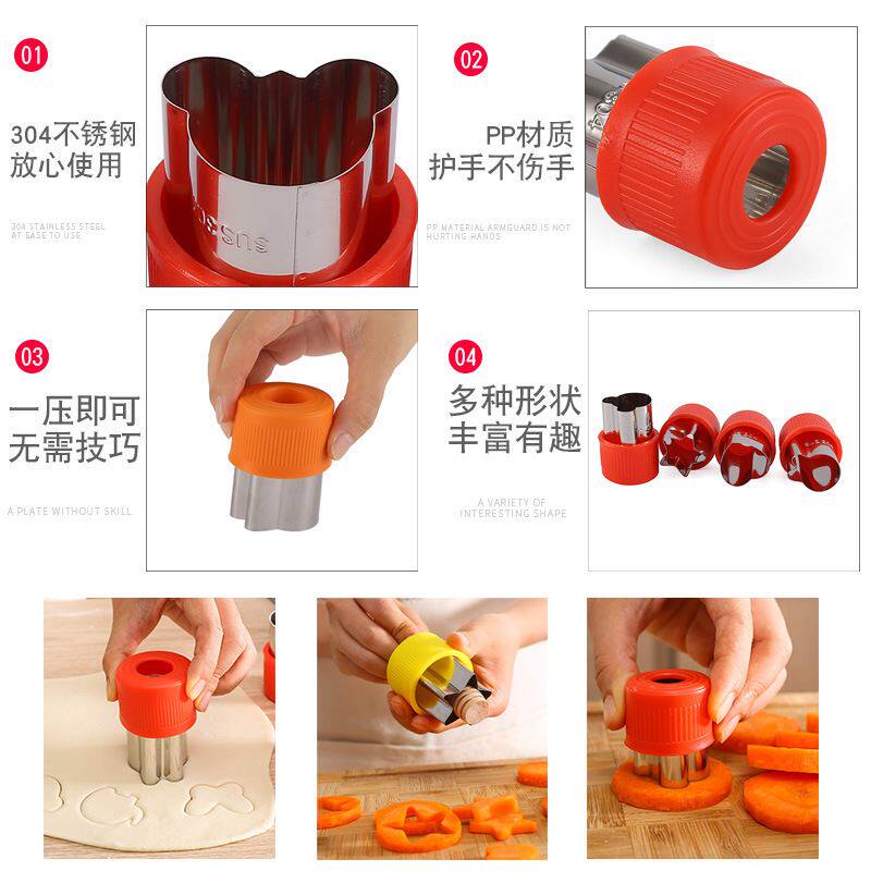📚 不锈钢印花模蔬果切花器儿童蝴蝶面模具饼干模蜂蜜棒大号4件套