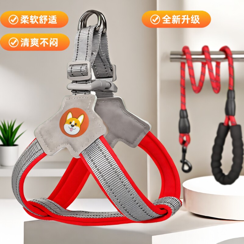 📚 狗狗牵引绳背心式宠物胸背带遛狗绳中小型柴犬柯基比熊泰迪狗链子