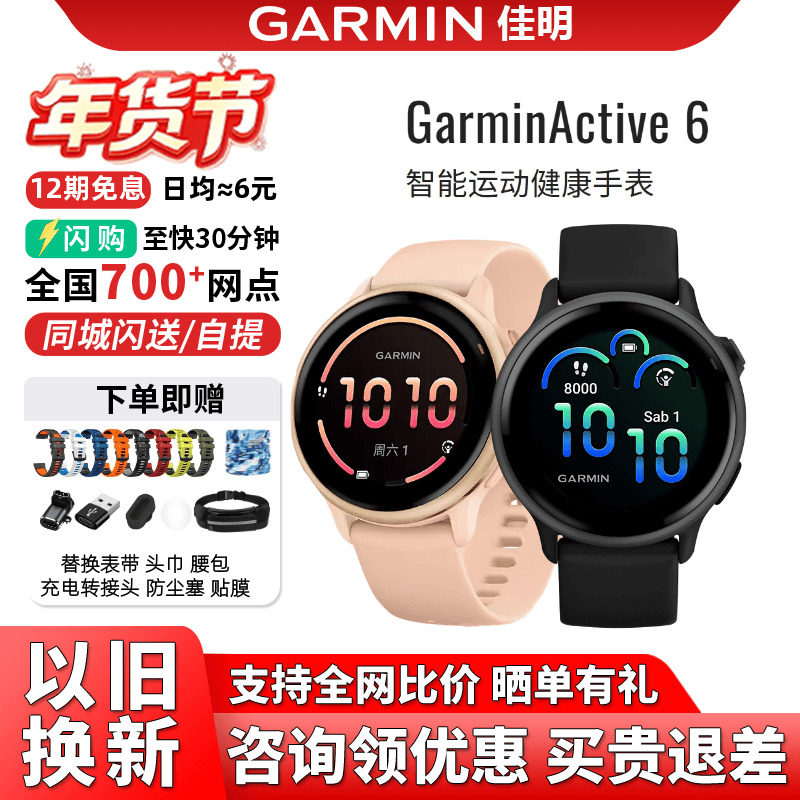 📚 [年货]Garmin佳明Active6心率HRV睡眠健身瑜伽音乐智能运动腕表女