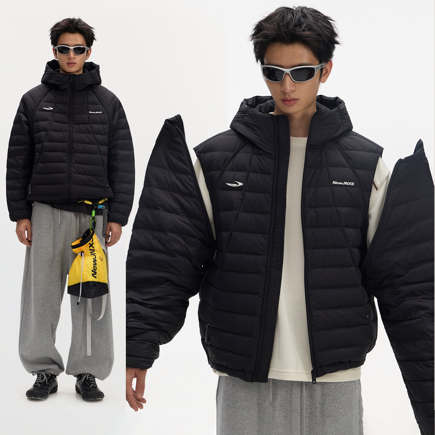 📚 江南先生NewJNXS高密无胆防绒可拆卸袖子羽绒服丝网印花logo外套