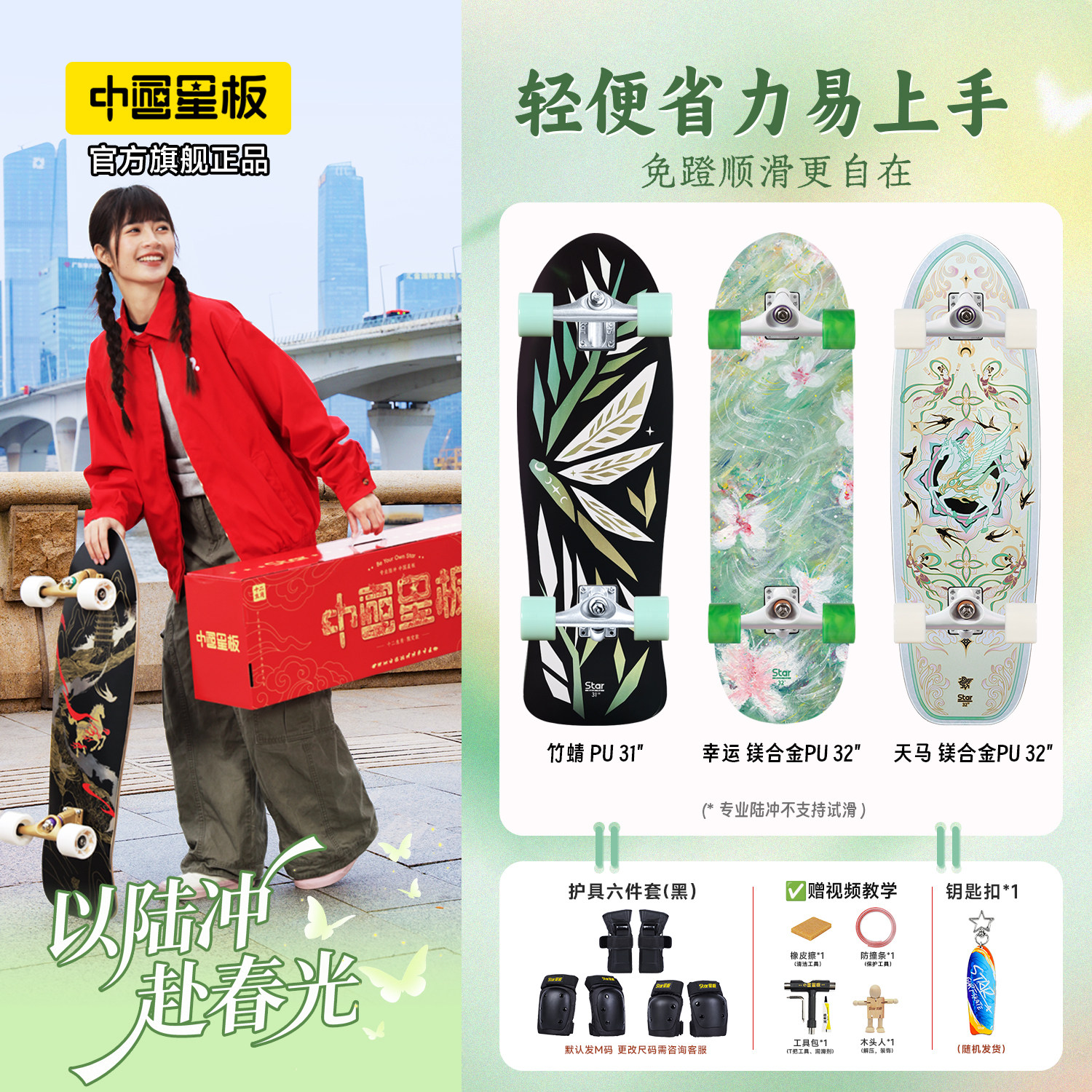 📚 星板陆冲板儿童滑板成人男女生初学者刷街训练陆地冲浪板专业板