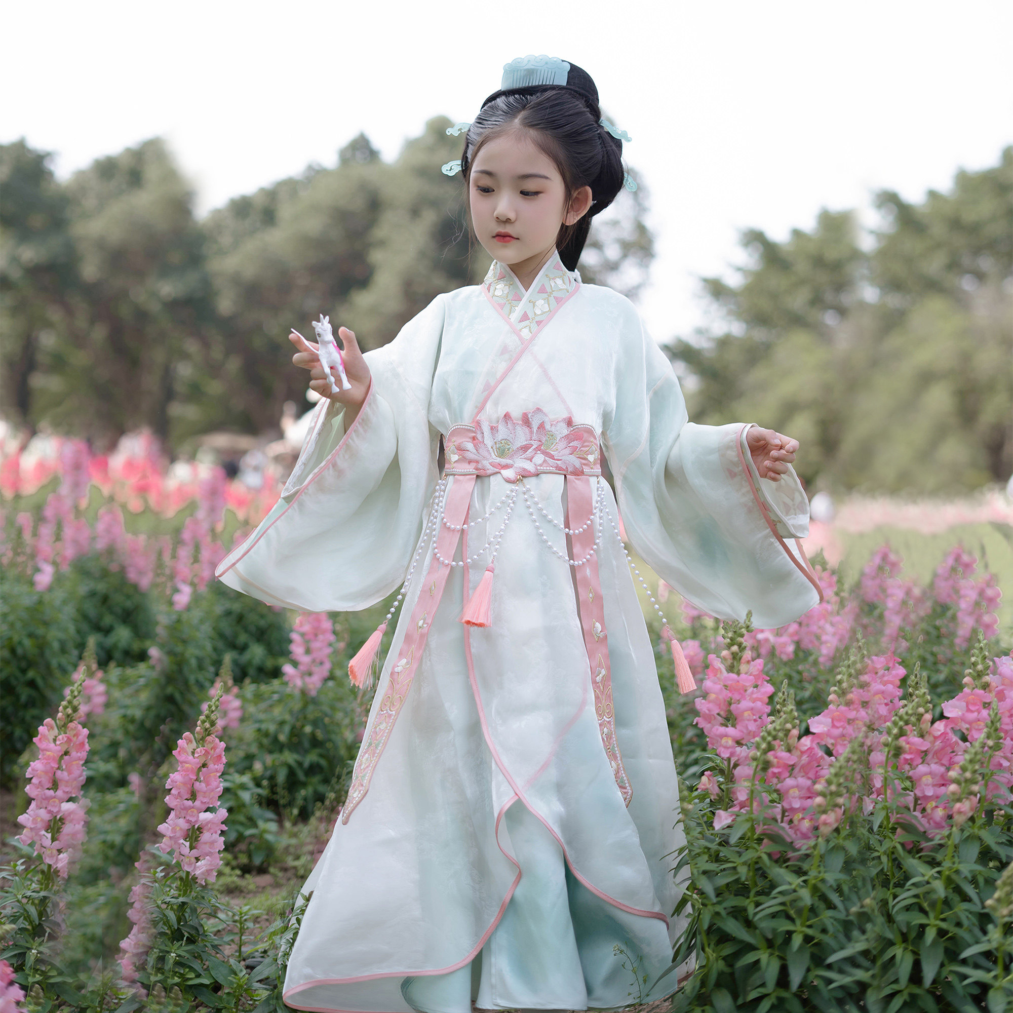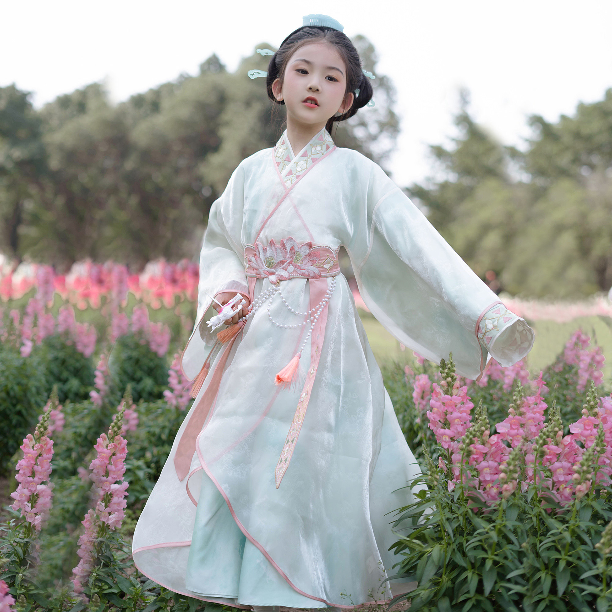 📚 洛竹儿童复原战国袍2025春秋新款中国风交叉领直裾袍交领女童汉服