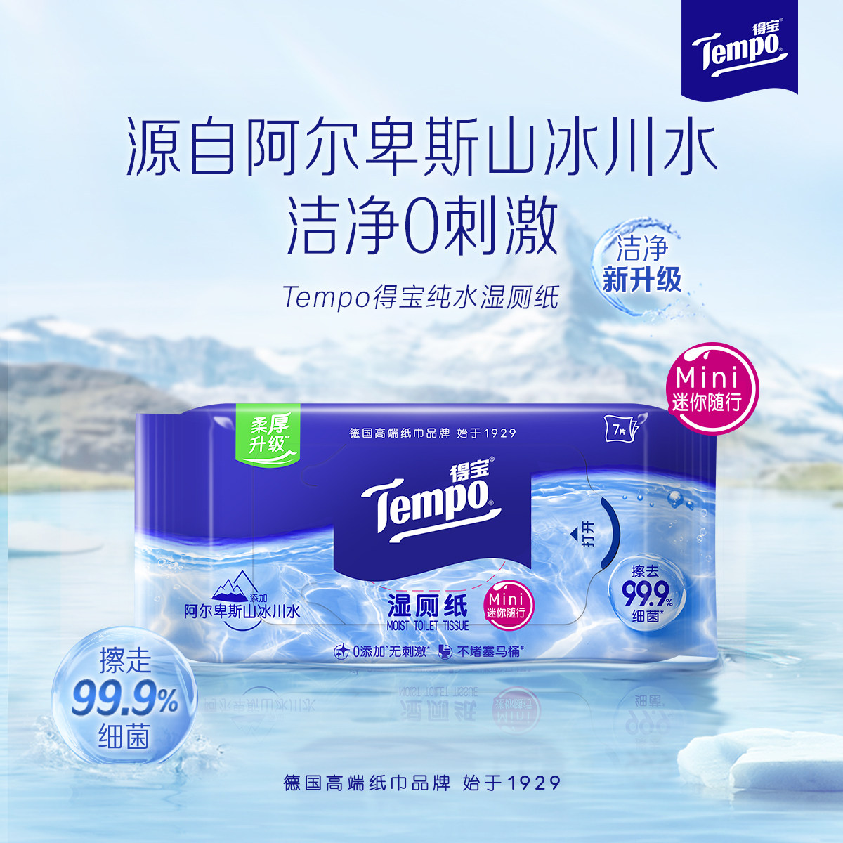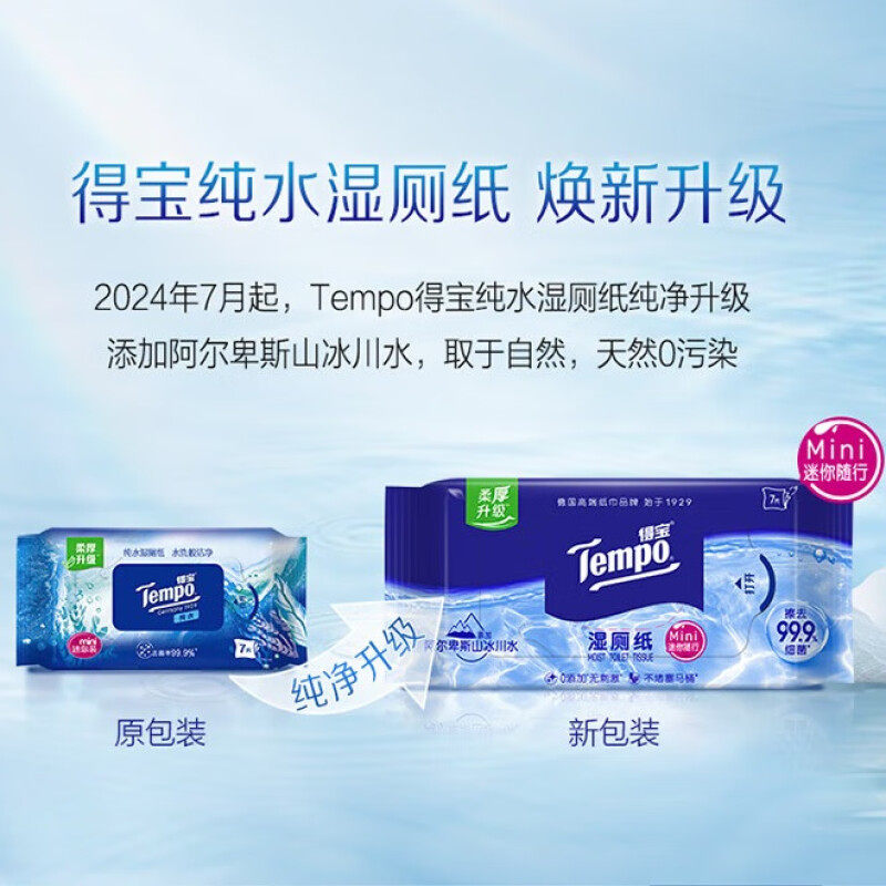 📚 tempo得宝纯水湿厕纸私处专用德宝湿巾迷你可冲散便携装7片6小包u