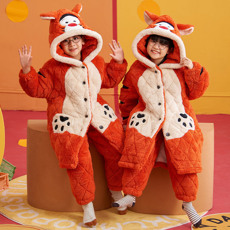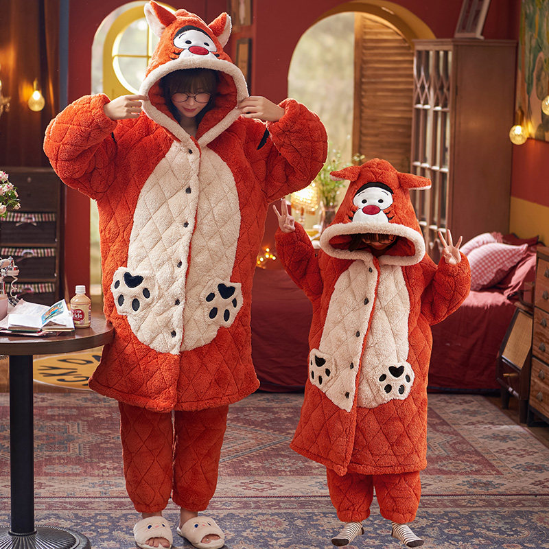 📚 亲子睡衣一家三口装冬季加绒加厚三层夹棉四口珊瑚绒儿童睡袍套装