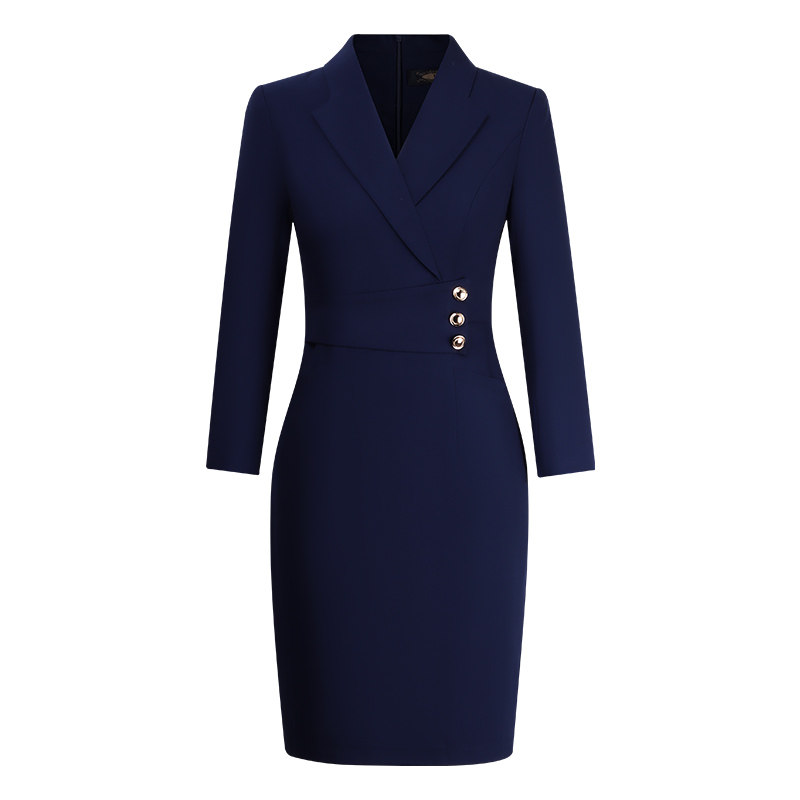 📚 职业装连衣裙女长袖灰色面试气质酒店前台接待珠宝店售楼部工作服