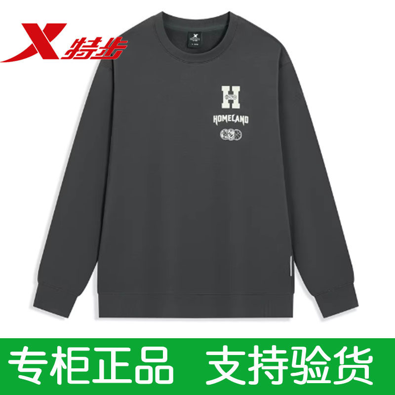 📚 特步套头卫衣男2025冬季新款休闲运动印花薄绒卫衣975429920175O