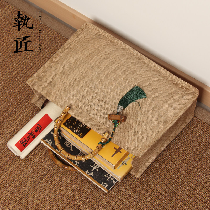 📚 手工竹鞭麻布手提袋亚麻袋环保购物礼品袋整理袋收纳袋大容量便携