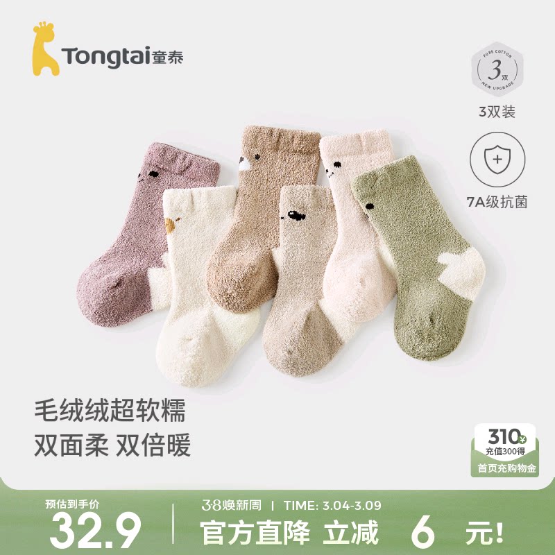 📚 童泰婴儿袜子冬季宝宝婴童袜男童女童加绒中筒袜儿童可爱宽口袜