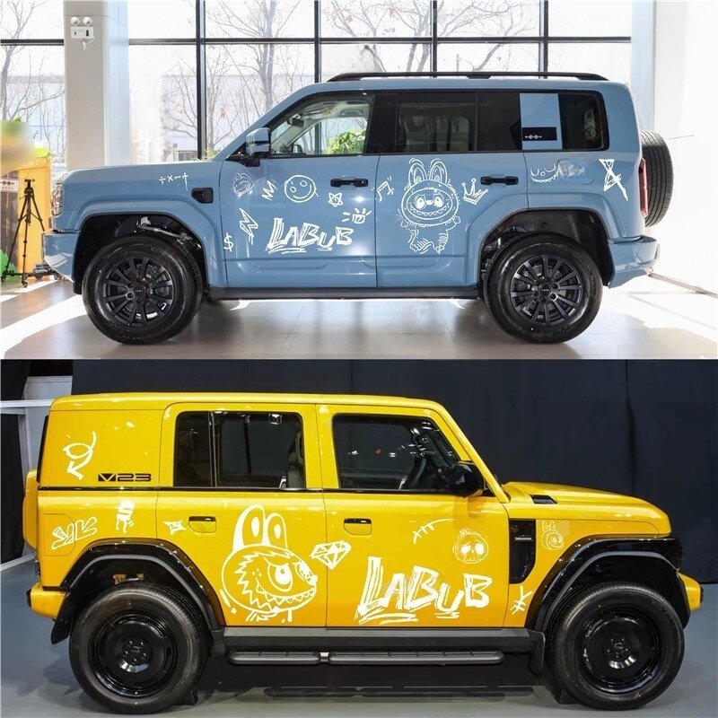📚 icar v23拉花车贴拉布布labubu车身贴纸旅行者BJ40引擎盖装饰贴画